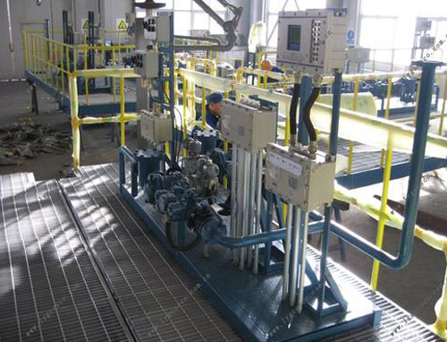 油品定量裝車橇裝組是指將每一個裝車鶴位內(nèi)的儀表和設備集成在一個專用的框架結構內(nèi),儀表和設備包括裝車鶴管、流量計、防溢油靜電報警控制器、壓力變送器、裝車流量控制閥、緊急切斷閥,裝車泵、批量控制器等, 只預留工藝連接口和控制電源和通訊接口,這個整體集成部分稱為裝車橇。與傳統(tǒng)的裝車控制系統(tǒng)就地組裝比較,裝車橇可以節(jié)省現(xiàn)場設計和現(xiàn)場施工量,縮短項目工期,提高裝車控制系統(tǒng)的質量。